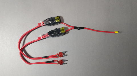 マイクロ角型PWヒューズ(ダイハツアトレーS710Vなど)を配線加工したもの PW逆流防止ユニット挿入端子を187ファストン端子としても良い (加工したヒューズは断線させています) PWヒューズがエンジンルーム内にある時は絶縁処理、防水処理が難しく取付は無理かと思われます。 |